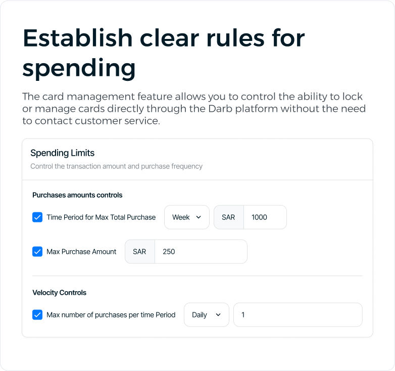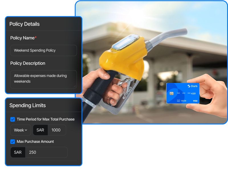 DarbPay guarantees protection against fuel fraud up to 10,000 Saudi riyals annually. Our mission is to provide you with a fuel management solution where you set your own spending rules, and we handle the rest, giving you peace of mind.